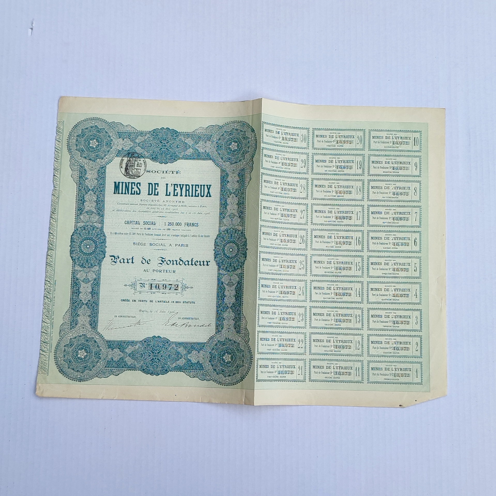 Au capital de 1.250.000 Francs