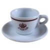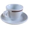 Biała ceramiczna filiżanka do espresso z podstawką, która pochodzi z kolekcji retro w stylu bistro, wyprodukowanej przez renomowaną włoską markę Richard Ginori.