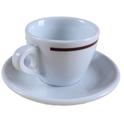 Wokół górnej krawędzi oraz na spodeczku znajduje się cienki, brązowy pasek.