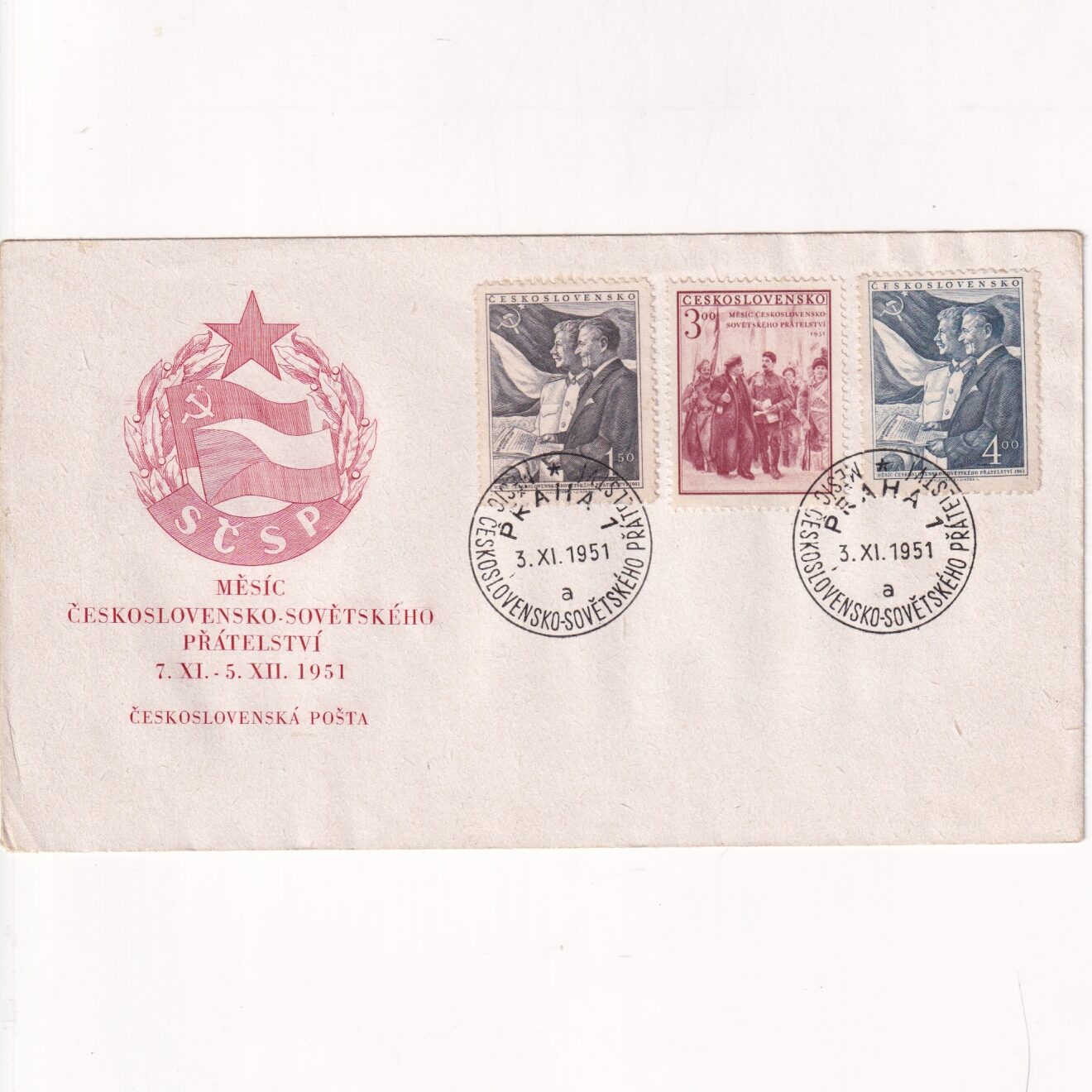 Czechosłowacja SW 693-695 FDC przyjaźń czechosłowacko-radziecka