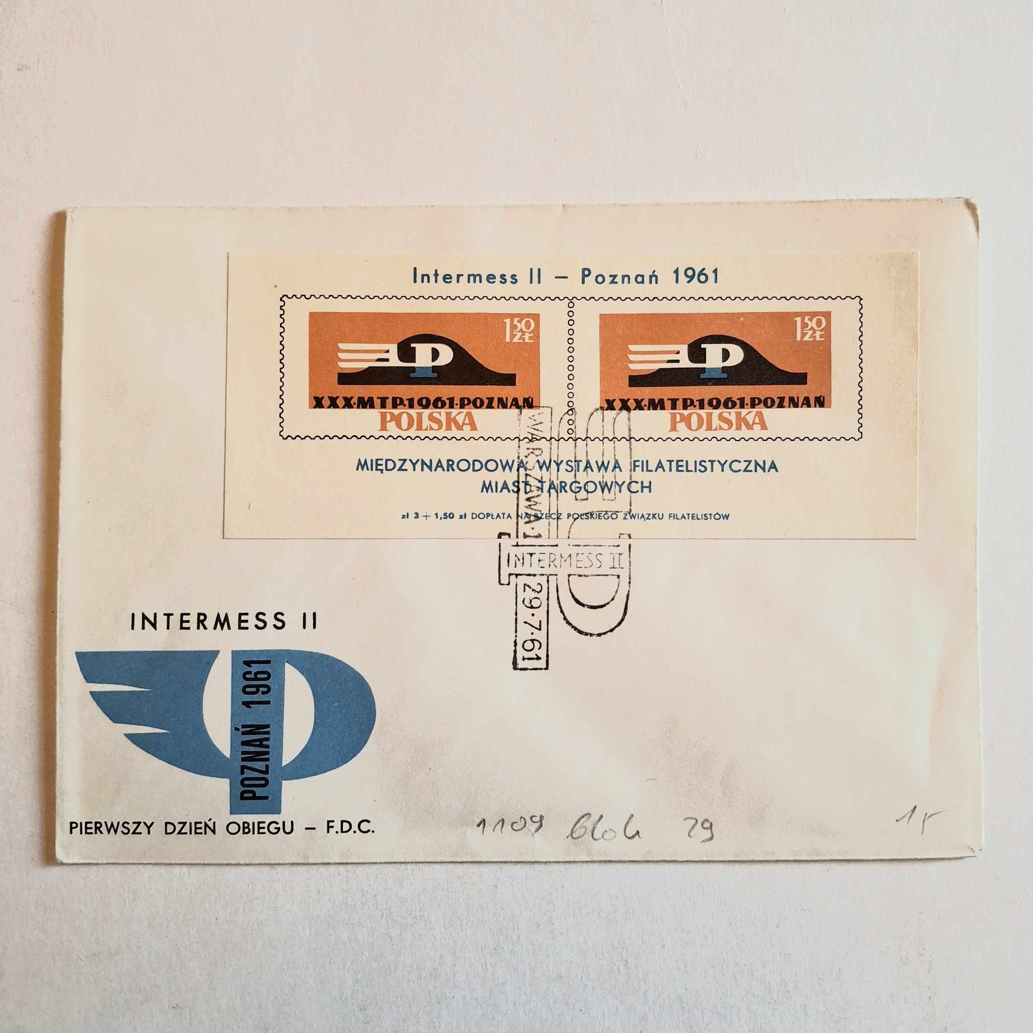 ilość Fi 1109 blok 29 koperta niebieska FDC Międzynarodowa Wystawa Filatelistyczna Miast Targowych "Intermess II"