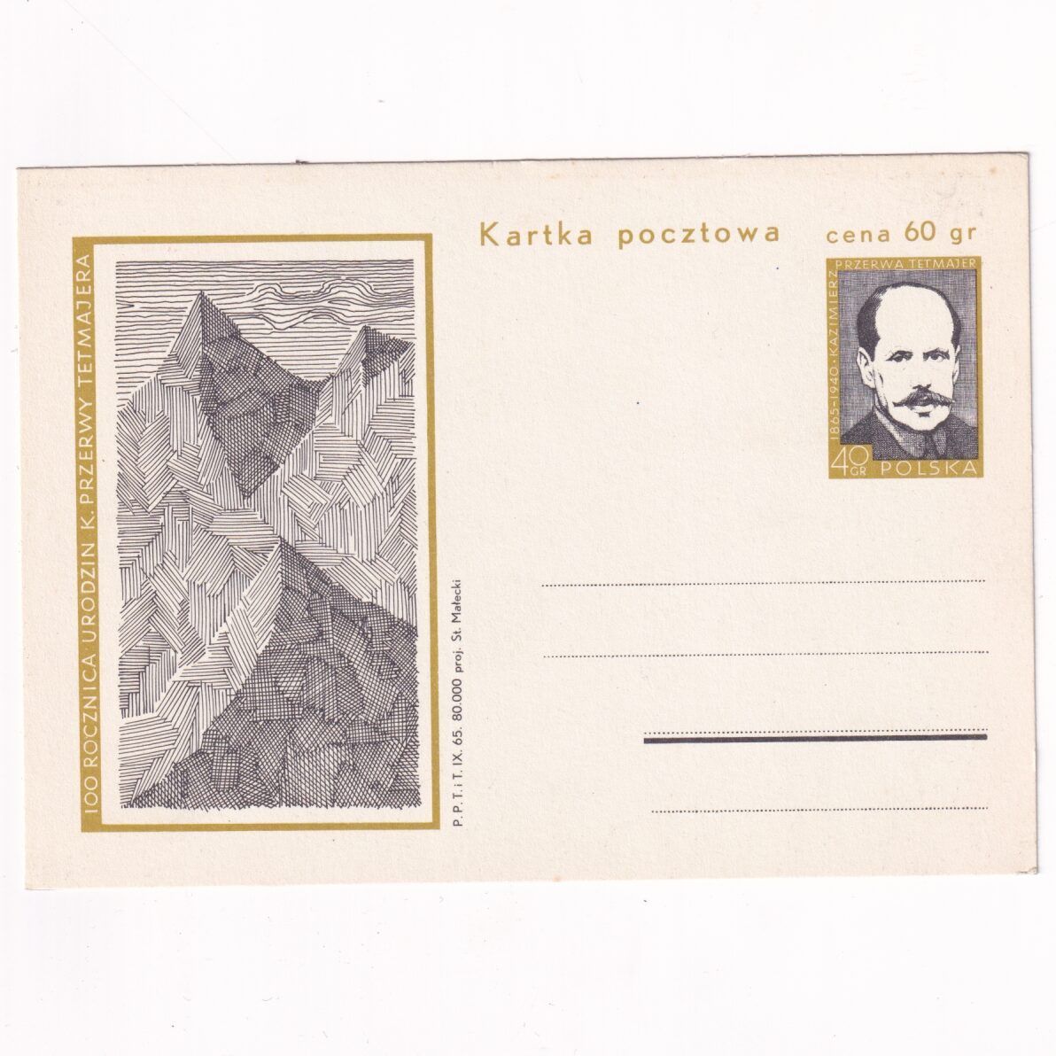 Fi 292 całostka pocztowa Cp 100-lecie urodzin Kazimierza Przerwy-Tetmajera