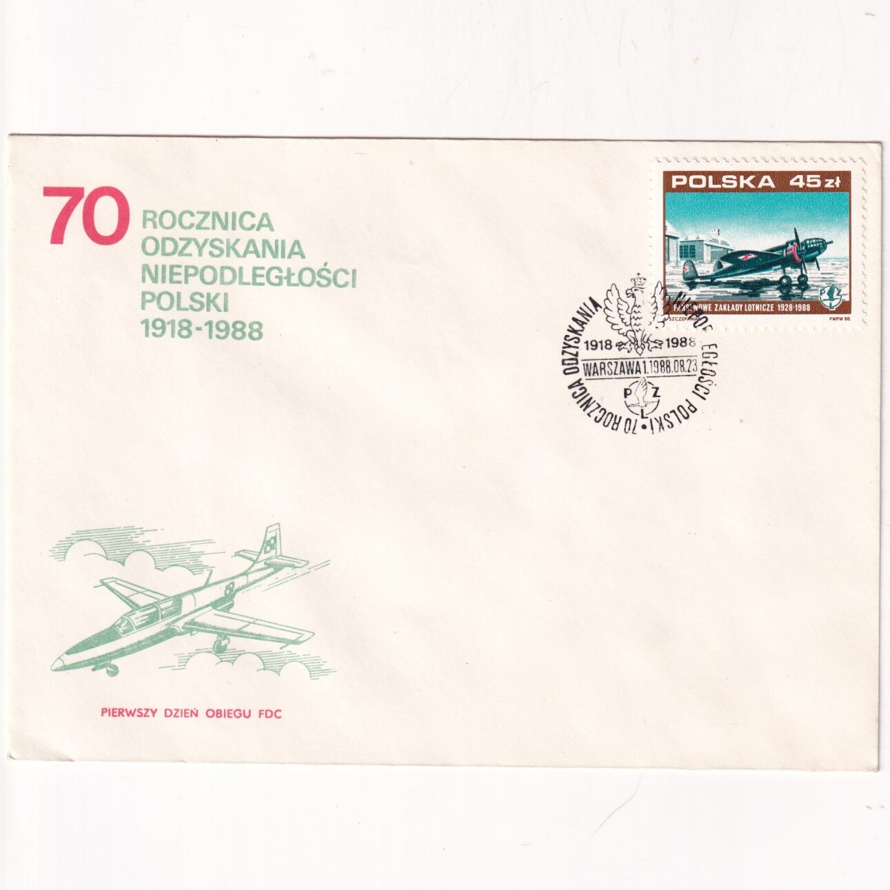 Fi 3010 FDC 70. rocznica odzyskania niepodległości Polski (I) – Państwowe Zakłady Lotnicze