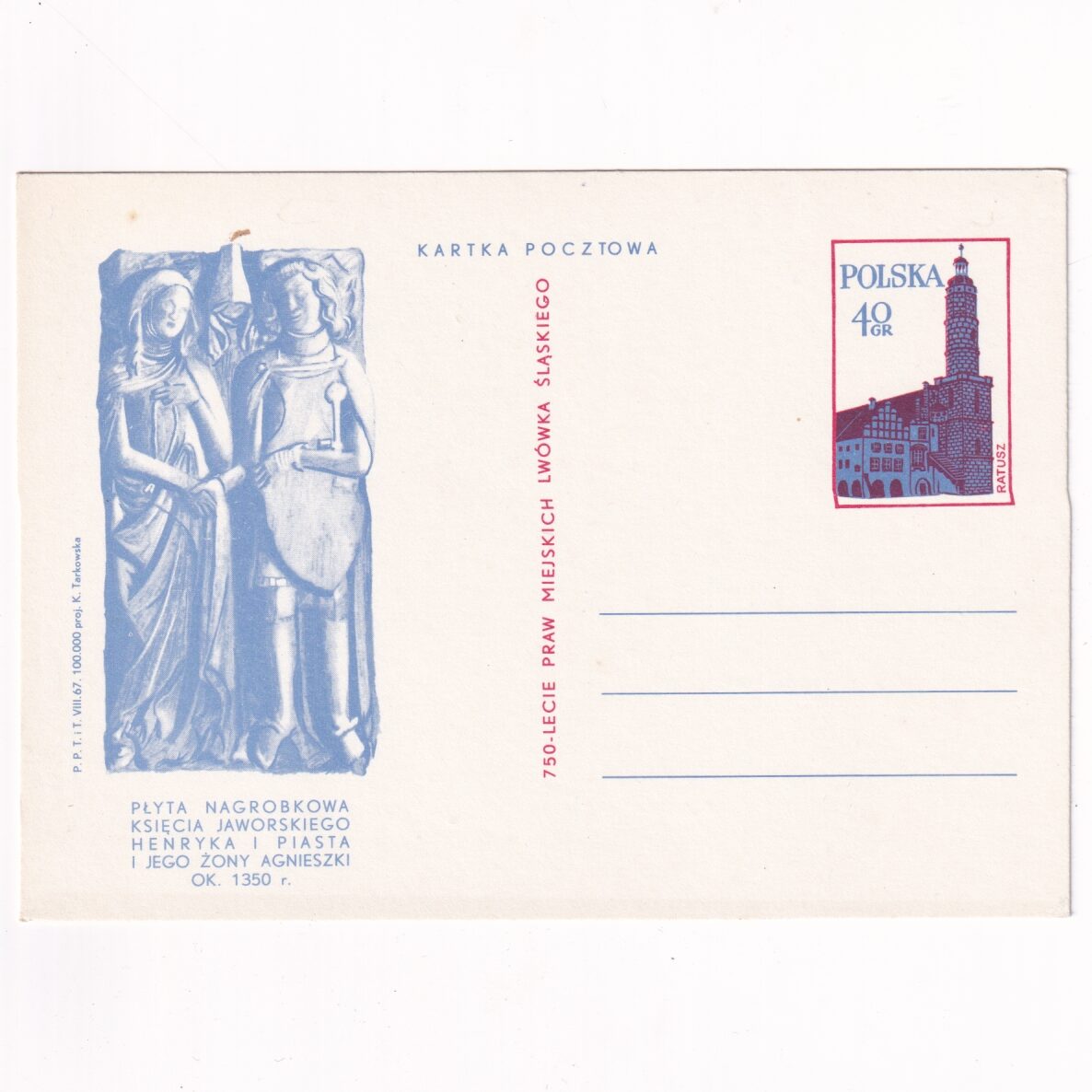 Fi 362 całostka pocztowa Cp 750-lecie uzyskania praw miejskich przez Lwówek Śląski