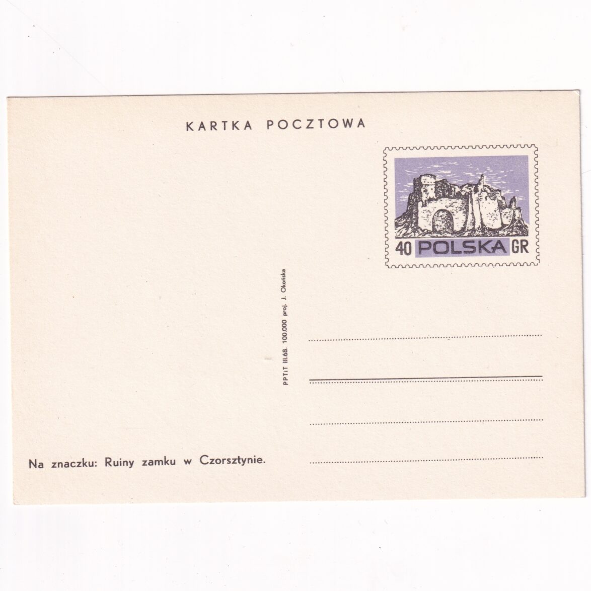Fi 385 całostka pocztowa Cp Ruiny zamku w Czorsztynie – turystyka