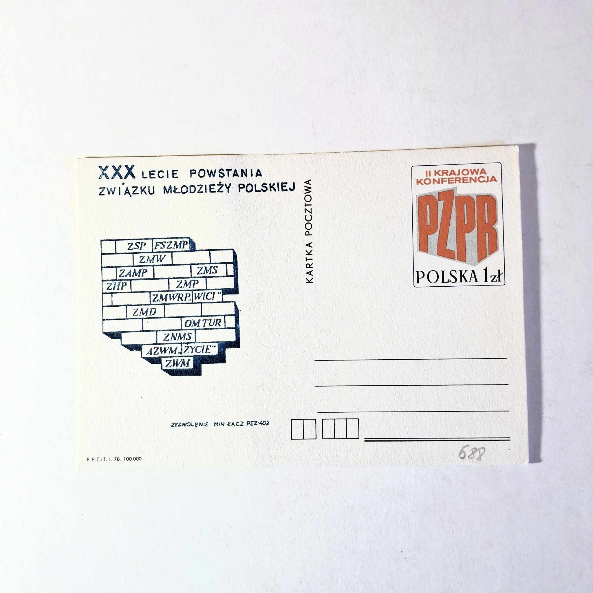 Fi 688 N 1 całostka pocztowa Cp II Krajowa Konferencja PZPR w Warszawie nadruk N1