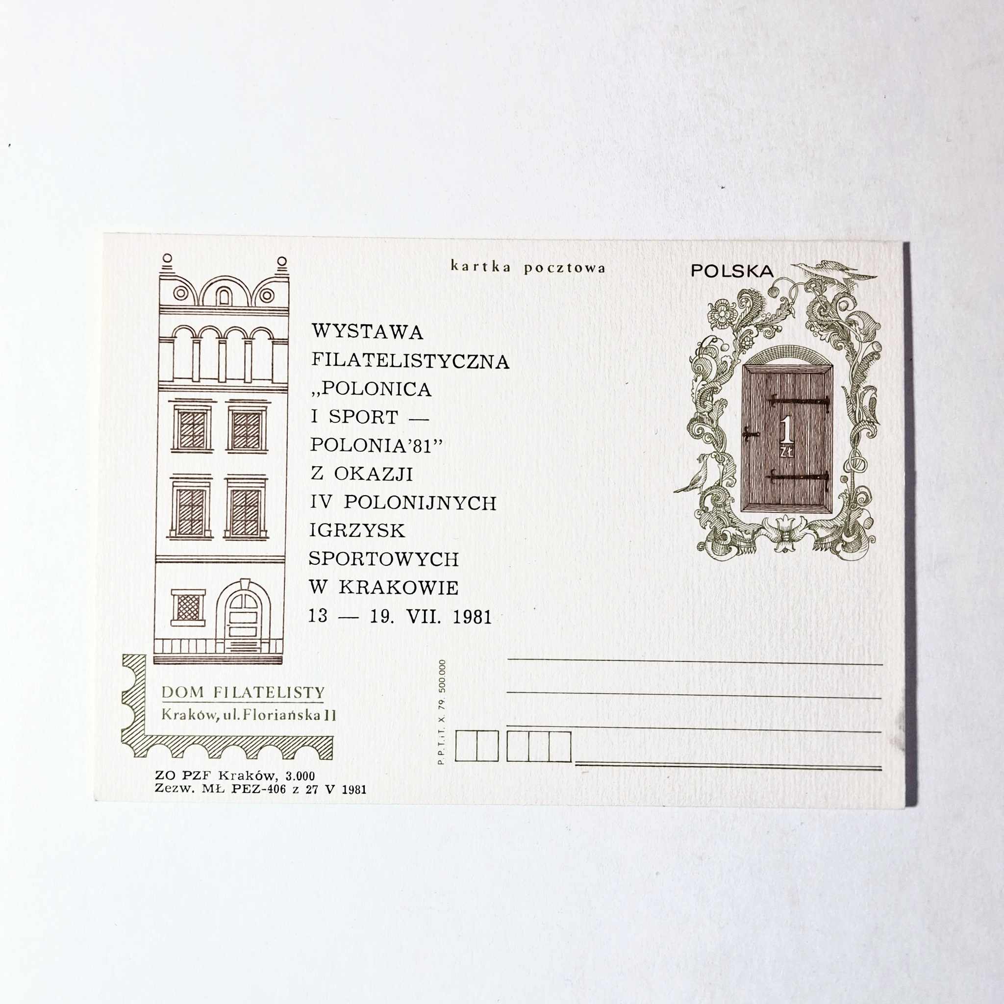 Fi 735 N5 całostka pocztowa Cp Dom Filatelisty w Krakowie nadruk 5
