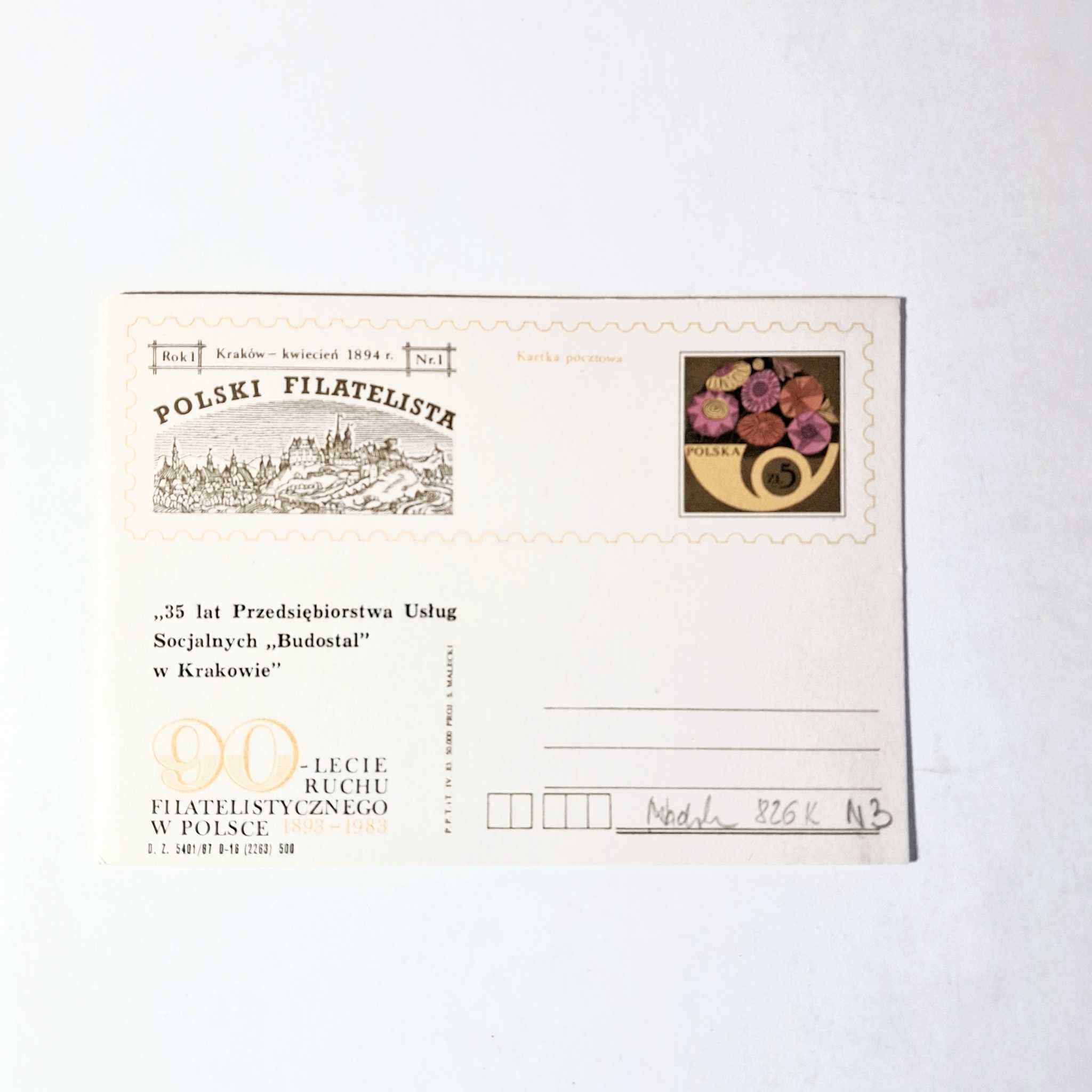 Fi 826 K N3 całostka pocztowa Cp 90 lat ruchu filatelistycznego w Polsce karnet nadruk 3