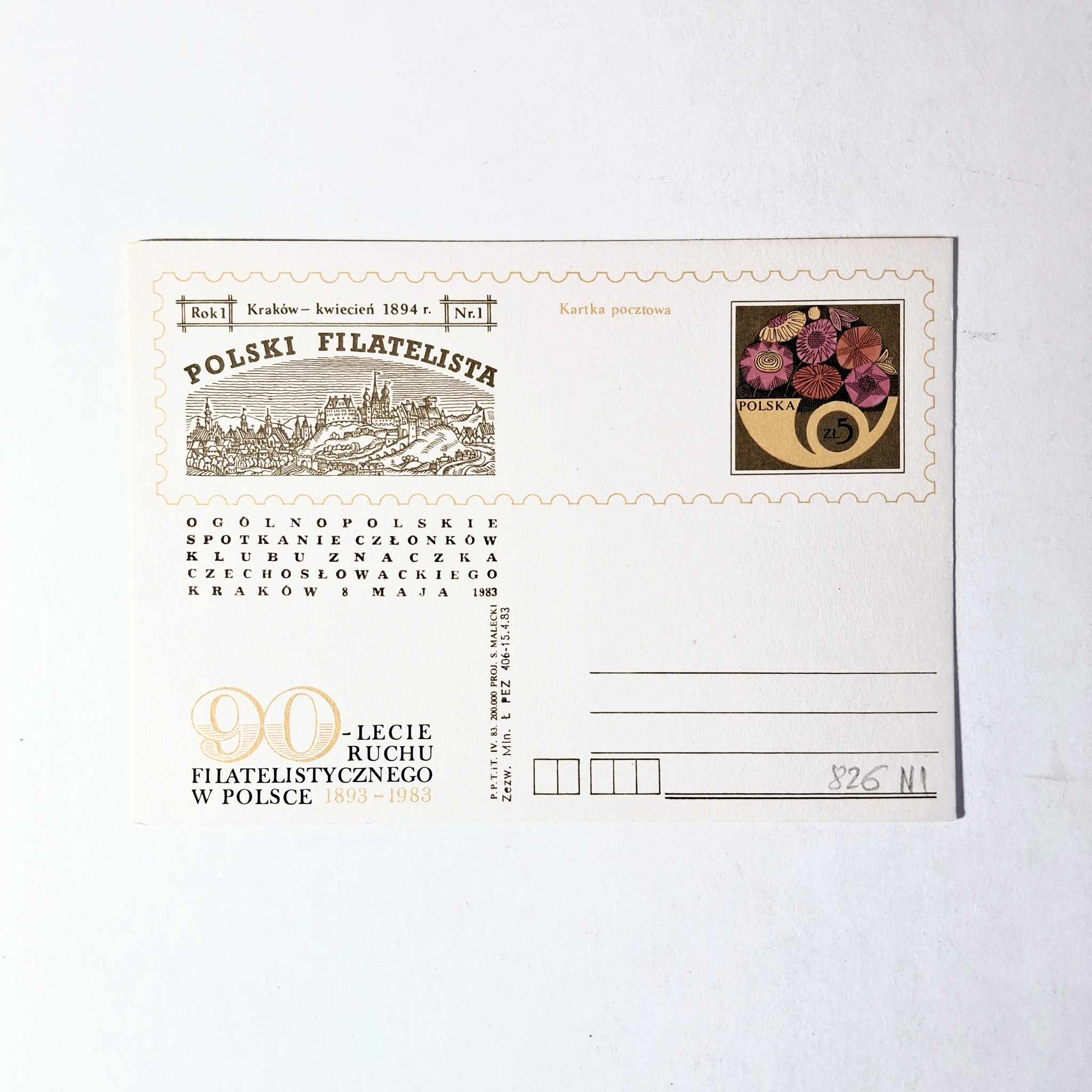 Fi 826 N 1 całostka pocztowa Cp 90 lat ruchu filatelistycznego w Polsce nadruk 1