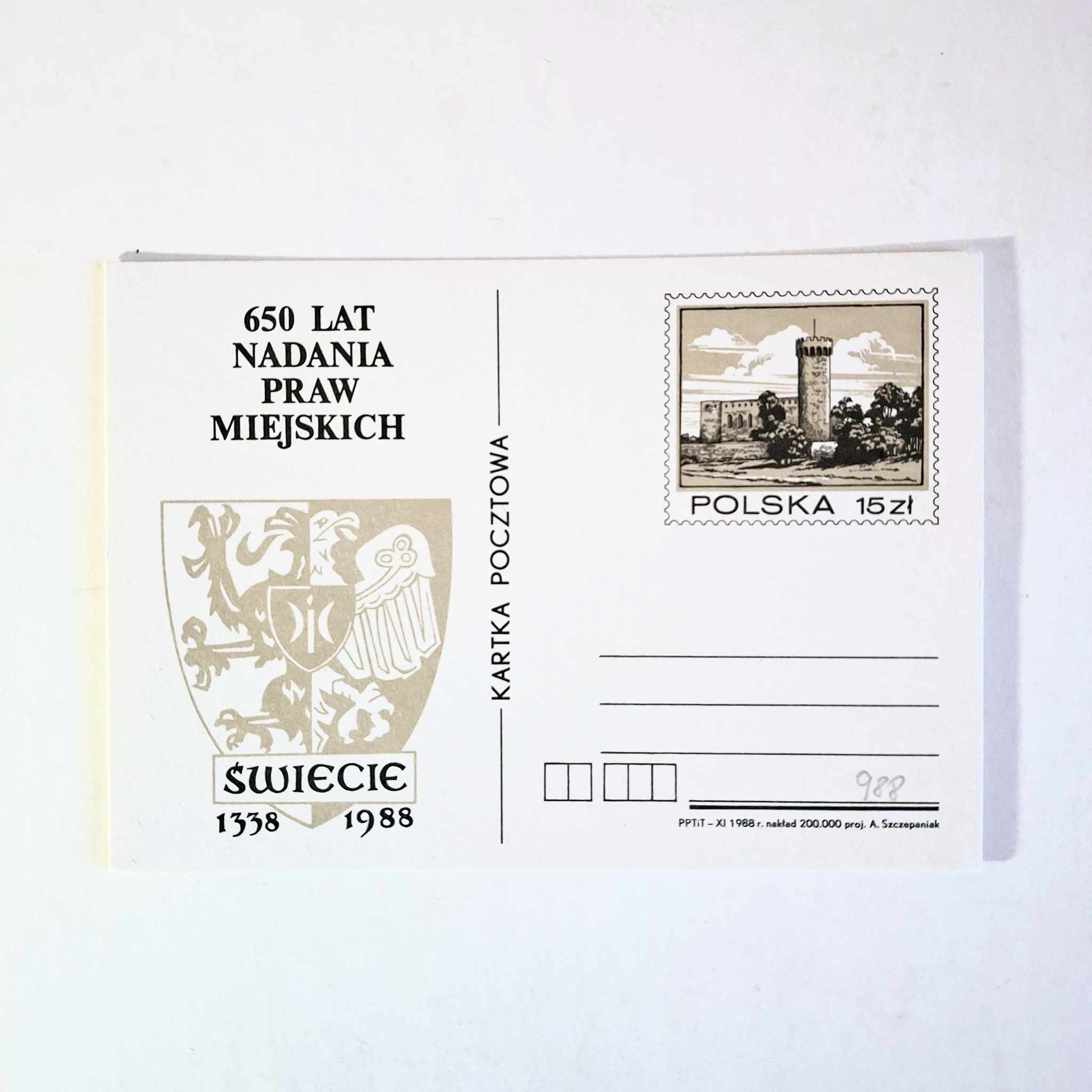 Fi 988 całostka pocztowa Cp 650 lat Świecia