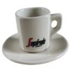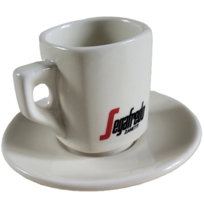 Filiżanka espresso ze spodkiem marki Segafredo Zanetti to model przeznaczony do cappuccino lub espresso, często wykonany z trwałej ceramiki lub porcelany z charakterystycznym logo producenta.