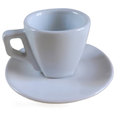 Filiżanka do espresso o charakterystycznym, zwężającym się ku dołowi kształcie. Produkty o bardzo zbliżonym wyglądzie są oferowane przez różnych producentów porcelany, często jako elementy profesjonalnego wyposażenia kawiarni lub eleganckich zestawów domowych.