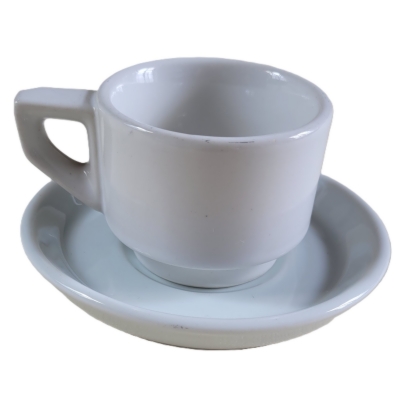 Filiżanka espresso ze spodkiem to porcelanowe naczynie do serwowania kawy marki Caffè Hardy, włoskiej palarni kawy.