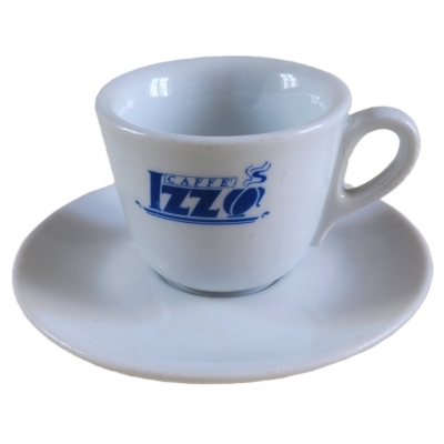 Filiżanka Porcelanowa filiżanka do cappuccino dla kolekcjonerów z grafiką „Mr. Pablo Torrcaffe”. Ze spodkiem z logo włoskiej palarni Caffè Izzo. Produkty te są wykonane z grubej porcelany, co pozwala na dłuższe utrzymanie temperatury napoju.
