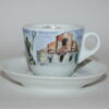 Śliczne włoskie filiżanki przedstawiające różne zabytki i miejsca we Włoszech.