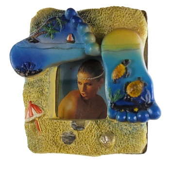 MAGNES NA LODÓWKĘ DZIEWCZYNA W KAMIENNYM OKNIE PLAŻA W OKNO MOŻNA WSTAWIĆ DOWOLNY PORTRET M02279