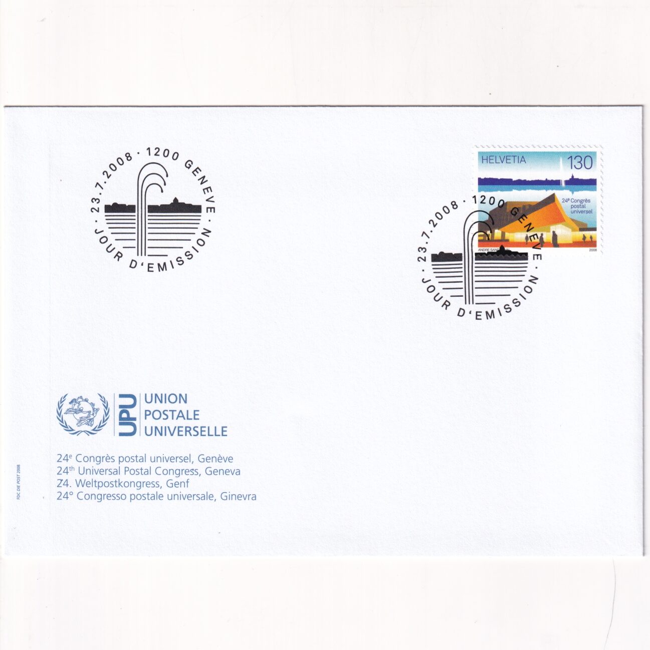 Szwajcaria SW 2061 FDC Kongres pocztowy